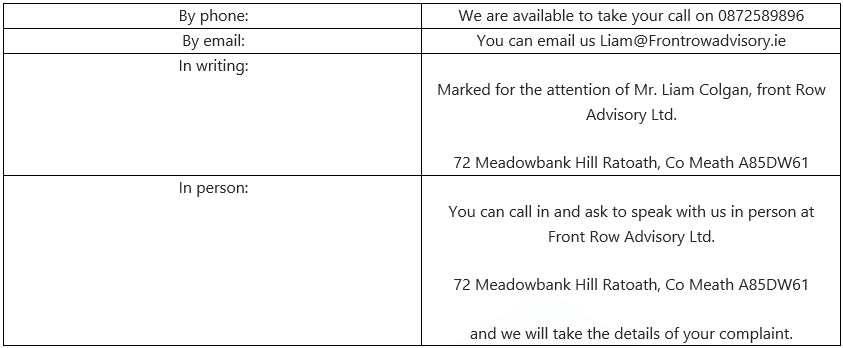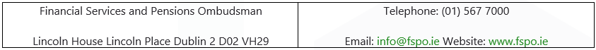We want to resolve complaints to your satisfaction whenever possible. If we can't reach agreement with you, you can refer your complaint to the Financial Services and Pensions Ombudsman. The Financial Services and Pensions Ombudsman is an independent, impartial, fair and free service that helps resolve complaints with pensions providers and regulated financial services providers.